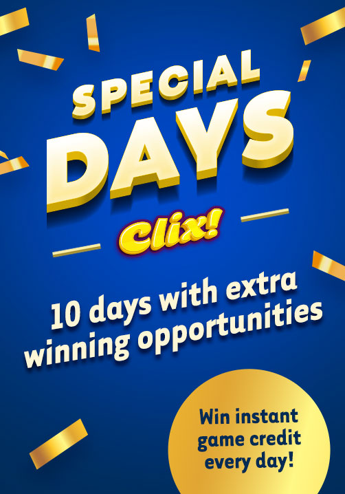From 23 March until 1 April 2026 we are celebrating our Clix – Special Days. During this period, you have the chance to win free gaming credit for Clix with a total value of over 60,000 francs.