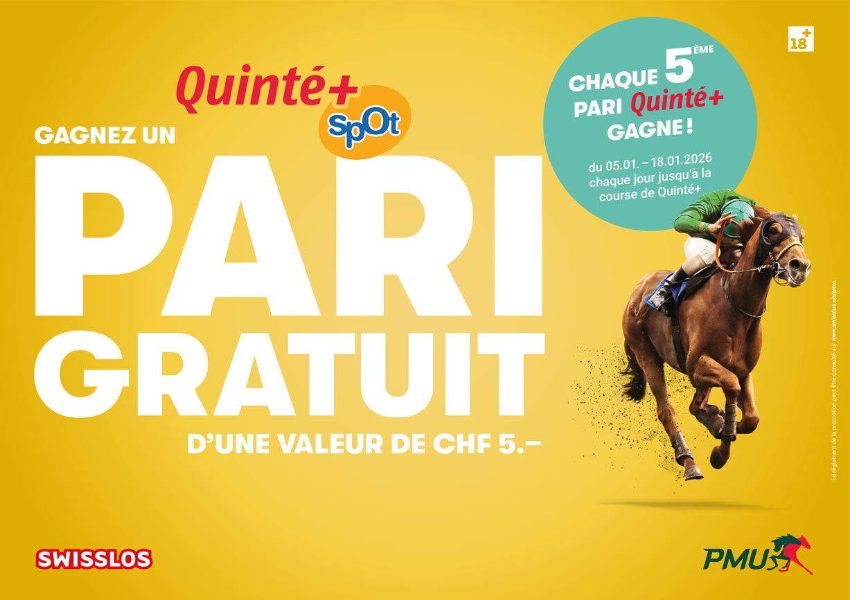 Du 05.01. - 18.01.2026 chaque jour jusqu'à la course de Quinté+: Chaque 5ème pari-Quinté+ gagne