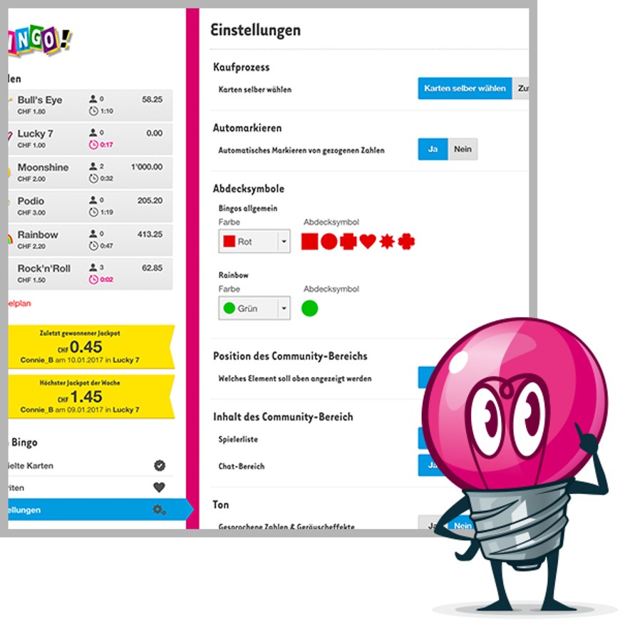 D’ora in poi il Bingo sarà unico, proprio come lei. Grazie alle nuove impostazioni, sarà lei a decidere come visualizzare il Bingo. Ad esempio può decidere dove piazzare la chat, oppure con quale colore dovranno essere coperti i numeri estratti. In questo modo avrà sempre al posto giusto le informazioni che per lei contano.